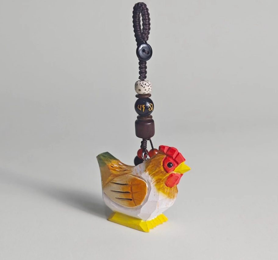 Bought this wood carving rooster key as a zodiac gift, and my couple friends cock-a-doodle celebrate.